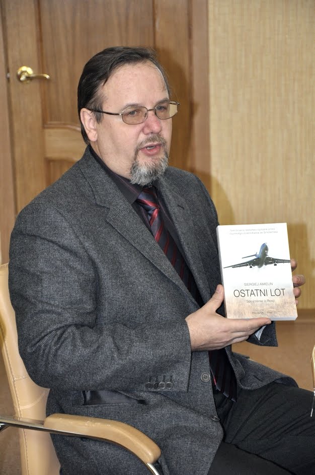 Oczywiście, skoro takie spotkanie na szczycie, to nie tylko gubernator ma parę słów do powiedzenia na temat wagi samego Internetu, lecz i wśród najważniejszych smoleńskich blogerów nie może zabraknąć gwiazdy radzieckiej dendrologii, doc. S. Amielina. I faktycznie jest, prezentując swoją książkę «Последний полет» („Ostatni lot. Spojrzenie z Rosji”), którą wydano mu na podstawie jego bezcennego, smoleńskiego bloga.