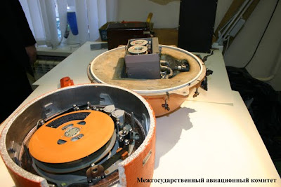 „14.04.2010 do laboratorium MAK został dostarczony, odnaleziony na miejscu zdarzenia mechanizm przesuwu taśmy BLM-1-1 seria 2 nr 390130 kasetowego pokładowego rejestratora KBN-1-1 serii 2 z kompletu pokładowego systemu rejestracji MSRP-64. Prace związane z otwarciem obudowy i kopiowaniem informacji z 14.04.2010 przeprowadzone były z udziałem specjalistów lotniczych Rzeczpospolitej Polskiej, a także z przedstawicielem prokuratury wojskowej Rzeczpospolitej Polskiej” (s. 72).