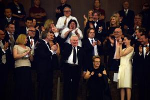 Tak wnikliwie oglądam wzdłuż i wszerz owo "łonetowe" zdjęcie, na którym słynna ekipa filmowa osłania szczelnie "bochatera" Bolka,/który bufonem nie jest i nigdy nie był/, a za tą ekipą tylko ochroniarze stoją...No to się "zapytywuję": gdzie te tłumy weneckie, no gdzie??? Owacje na stojąco czy normalna schiza?