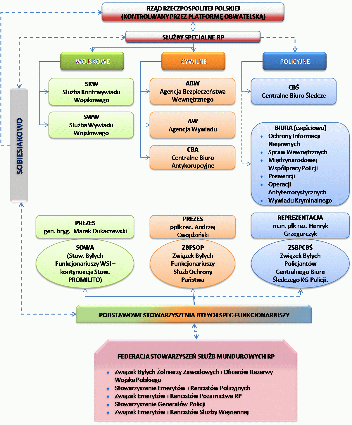 Powyższy schemat - wobec chyba trwania niejawnej "wojenki" pomiędzy premierem a prezydentem - może trzeba by było uzupełnić o coraz bardziej zwiększający się bezpośredni i pośredni wpływ prezydenta na de facto "jego" wojskowe służby specjalne.