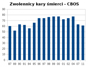 Na podstawie danych Ministerstwa Sprawiedliwości RP za lata 2002-2008 (zobacz TUTAJ) z art. 148 k.k. (morderstwo, zabójstwo) skazywano średnio każdego roku 426 osób, zaś pozbawiono wolności średnio 380 osób rocznie. Jeśli przyjąć wyjątkowo niskie wskaźniki z USA, to otrzymamy, że po zwolnieniu z więzienia osoby te zabiją 5 osób w ciągu trzech lat. Zatem każdego roku polski wymiar sprawiedliwości zabija 5 niewinnych osób i nie słychać głosów sprzeciwu. Morderców zabijać nie wolno i muszą mieć dobre warunki w więzieniu, zaś niewinne osoby... - ich obowiązkiem jest utrzymywanie tego systemu.