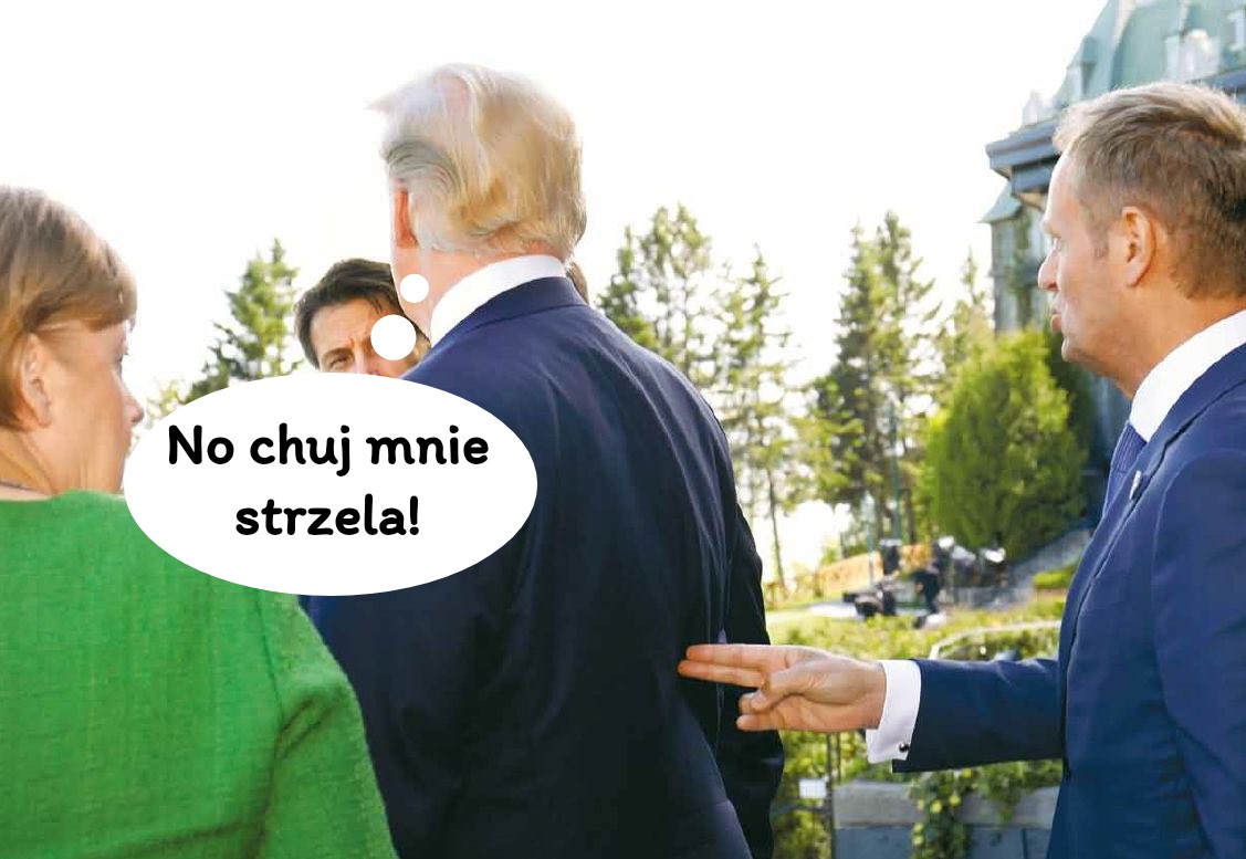 W załączeniu: zdjęcie na którym D.Tusk za plecami prezydenta USA złożył rękę w kształt pistoletu i mierzy prezydentowi Trumpowi w plecy. Pif-paf, a pani kancelerz Niemiec obserwuje wyczyny D. Tuska.https://www.tvp.info/45692016/ekspert-w-strzelaniu-demokracji-w-plecy-komentarze-pod-zdjeciem-tuska-celujacego-w-trumpa