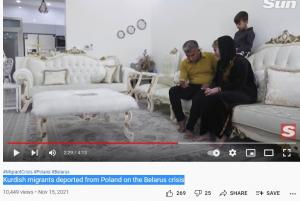 Na początku filmiku widzimy iracką flagę kurdyjską, później możemy się rozejrzeć po okazałym domostwie owego Kurda (na wstępie to tylko kuchnia) i spojrzeć na niego samego, ubranego przyzwoicie, z sygnetem na palcu. On wyciąga w plastik owinięte pismo od polskiego rządu pozbawiające go szansy na godne życie w Europie. Skarży się, że tylko sama wiza kosztowała go 1400 dolarów za osobę. Z tego, co widzę, tych osób musiało być co najmniej trzy. Następnie znajdujemy się w środku jakiegoś biura, chyba podróży, które najprawdopodobniej załatwia wizy turystyczne do Europy via Białoruś i oglądamy oburzoną twarz urzędnika (1:25). Mężczyzna stwierdza, że Białoruś jest całkowicie świadoma, że ci turyści przybywają aby przekroczyć granicę.* Mniej więcej od 2:30 przyglądamy się Kurdom przebywającym w specjalnym ośrodku w Polsce, którzy już przeszli na nasze utrzymanie. Czyż nie wygląda tam biednie?