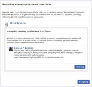 Znów dostałem bana od fejsbużycy, i to na dwóch kontach. Uznała ona, że następujące słowa łamią jej standardy: