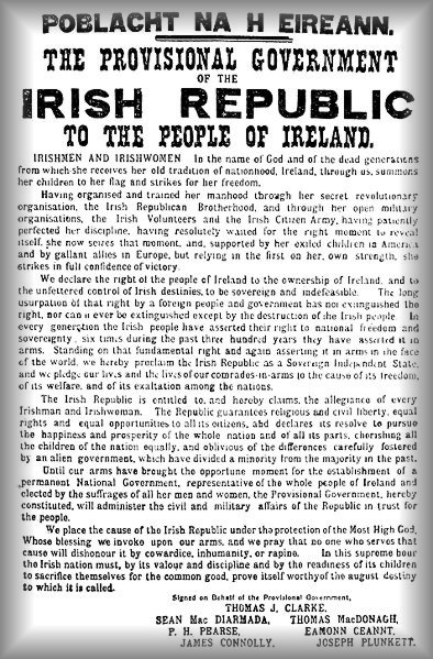 Stulecie „Powstania wielkanocnego” w Irlandii jest obchodzone z wielkim hukiem. Ogromne bilbordy, clipy upamiętniające rocznice w telewizji i w internecie. W prasie wciąż ukazują się dodatki na temat historii powstania i jej bohaterów.