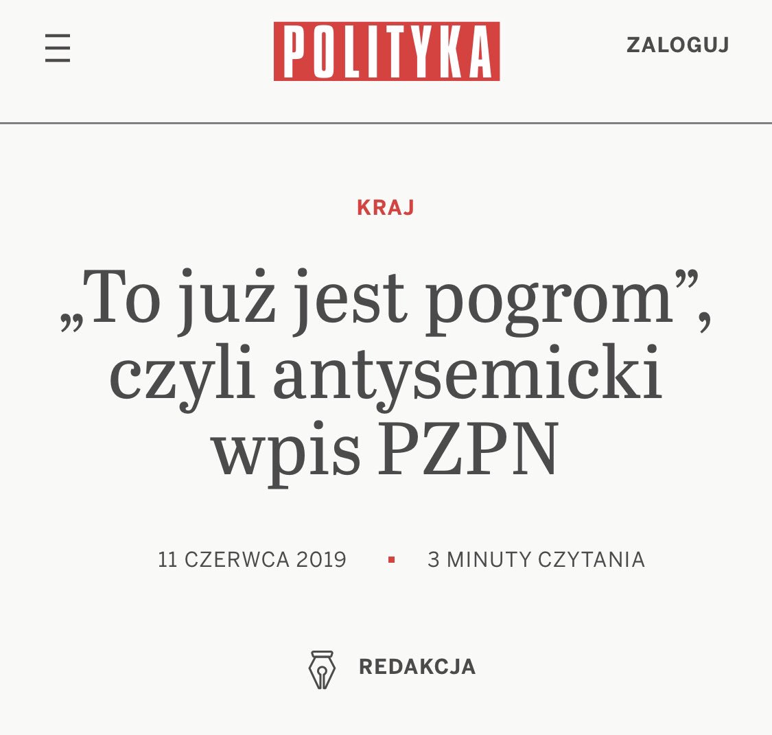 Najwyższym poziomem wciskania propagandy jest to, żeby ludzie sami siebie wzajemnie posądzali pod byle pretekstem o działania przeciw "Nacji". Żeby sami wyolbrzymiali i doszukiwali się przejawów ataków nawet jeśli ich brak.A teraz zastanówmy się co by było jakby Piątek wykonał swoją cieszynke po golu?! Dziesiątki artykułów o podobnej narracji. Dobrze że chłopak zrezygnował z niej na rzecz własnego spokoju, bo pewnym niepoważnym ludziom się nie przetłumaczy.Oczywiście. W ogóle wygrana z Izraelem to antysemityzm, a wygranie 4-0 to antysemityzm do kwadratu.Panie redaktorze "Polityki", rubryka "świat bez klamek" w waszym piśmie jest o jakieś 40 stron za krótka.To po prostu lewicowy neostalinizm. Najbardziej oburzające jest to,że ta bolszewia bez przerwy wyciera swoje zakłamane mordy wolnością, wolnością słowa itd. Język zupełnie jak w ZSRR-każdy słowo znaczy co innego niż w rzeczywistości, jest jej odwrotnością. Jak za Stalina