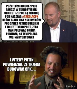 Memy śmiejące sie z pisowców i konfiarzy - jakoby wcześniej chcieli CPK, a teraz nie chcą. - no jakie głupki ci pisowcy i konfiarze.