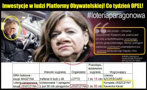 Rzucona na Ministerstwo Finansów Iza Leszczyna-– przyjrzała się więc problemom państwa które za Tuska nie istniało i swoim okiem dyletantki ekonomicznej wymyśliła loterię paragonową! Wkrótce okazało się, że diagnoza Izy była słuszna, gdyż samochód OPEL Insygnia w tej loterii wygrała jej koleżanka z Częstochowy pani Grażyna Kawecka-Karaś…
