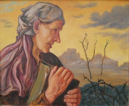 Chciałabym jeszcze wspomnieć równie ważną dla pp. Hofmanów osobę - jest nią p. Katarzyna Pasternak - wieloletnia towarzyszka i gospodyni małżeństwa, także modelka malarza. Poniżej wklejam jej portret na tle Monte Cassino.