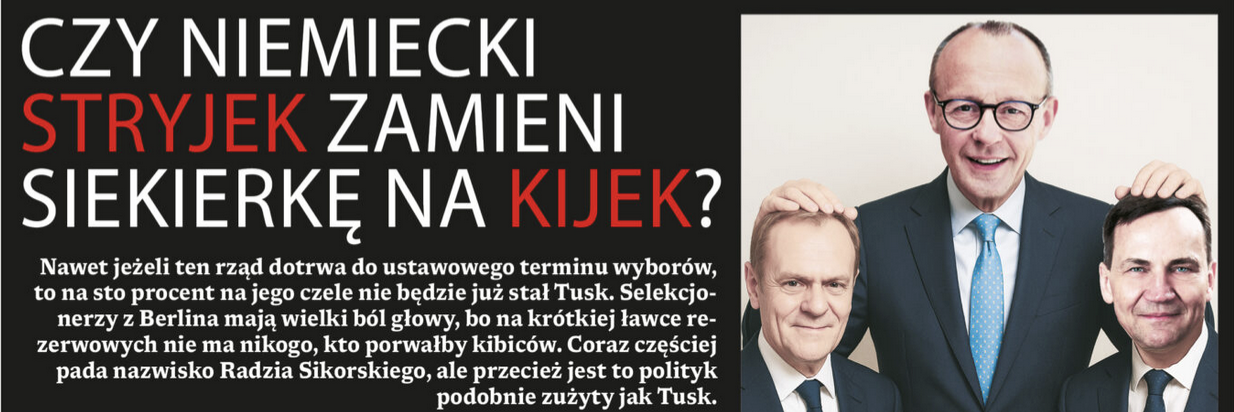 Jeżeli rzeczywiście dojdzie do wymiany Tuska na Sikorskiego będzie to oznaka wielkiej desperacji Berlina, który chcąc rozpaczliwie utrzymać swoje wpływy w Polsce skorzysta z podpowiedzi Jana Brzechwy, który w znanym wierszu pisał: Więc zamienił stryjek siekierkę na kijek. Z drugiej strony trudno dziwić się Niemcom, bo na bezrybiu i rak ryba. Jak mówi wybitna historyk, pani prof Ewa Kurek: „Jeśli popatrzeć na tych właśnie ochlokratów, którzy rządzą Polską proszę Państwa, to ja naprawdę już dość długo żyję i były różne rządy, ale tyle po prostu głąbów u władzy jak w tej chwili, to takich ochlokratów, takiego pospólstwa niewykształconego, bez rozumu to jeszcze nie widziałam na czele z Tuskiem”. Słowa pani profesor to gorzka prawda i trudno się jej dziwić, że nie bawi się tak jak niektórzy w eufemizmy opowiadając o „ludziach o niskich kompetencjach”.