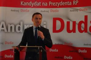 Kilkuset bydgoszczan gorąco witało kandydata na prezydenta Andrzeja Dudę.