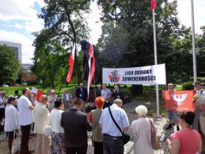 Uroczystości związane z przypadającym na ten dzień świętem Wojska Polskiego rozpoczęły się o godz. 14.30 uczczeniem minutą ciszy polskich żołnierzy, którzy zginęli w obronie naszej Ojczyzny. Głównym elementem obchodów było przemówienie Przewodniczącego LOS Wojciecha Podjackiego, który przypomniał zgromadzonym aspekty historyczne związane z wojną polsko-bolszewicką. Odniósł się także do aktualnych zagrożeń i wyzwań, przed którymi stanęło nasze państwo, w związku z komplikującą się sytuacją geopolityczną. Skomentował również obecny stan gotowości bojowej Polskich Sił Zbrojnych, które nadal borykają się z wieloma problemami. Wojciech Podjacki zaapelował do rządzących o zwiększenie wysiłków na rzecz umocnienia polskiego potencjału obronnego oraz podkreślił konieczność polegania na własnych siłach, a nie oglądania się wyłącznie na pomoc sojuszników. Na zakończenie zgromadzenia odśpiewano hymn państwowy.