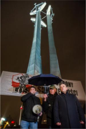 Ani późna pora, ani pogoda nie przeszkodziły Gdańszczanom w oddaniu hołdu ofiarom stanu wojennego, z dala od politycznego zgiełku, wywołanego przez Platformę Obywatelską. Partia ta, która wystawiła na swoich listach wyborczych licznych aparatczyków PZPR, dzisiaj kreuje się na formację antykomunistyczną w oparciu o wątpliwe autorytety moralne tj. Lecha Wałęsę, czy Henrykę Krzywonos. W tym celu powołany został tzw. Komitet Obrony Demokracji, który podjął próbę zawłaszczenia dnia 13 grudnia w celu osiągnięcia korzyści politycznych.