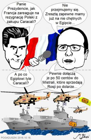 Swoją drogą ciekawe, czy po rezygnacji Polski z zakupu Caracali, Francuzi i ich nie sprzedadzą do Egiptu? W końcu do desantowca za 1$ można by z powodzeniem dołączyć w promocji kilka helikopterów po np. 50 centów. Jak transakcja stulecia, to na całego...