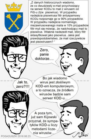 Zadanie 1. Filtr antyspamowy powinien blokować niechciane wiadomości, a nie wirusy jak proponuje autor zadania, ale widać jak większości sympatyków KOD-u, realia pana dr (re)hab. nie interesują.