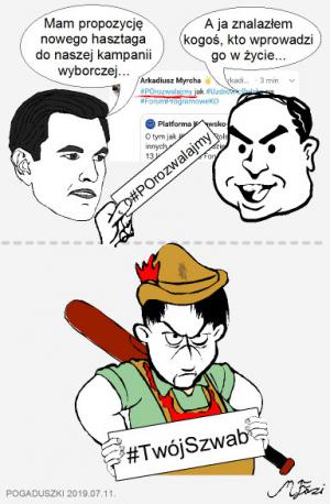 Mam apel do PO-KO. Litości! Przestańcie zamieszczać cokolwiek w internecie, bo ja już nie mam sił do rysowania kolejnych waszych wpadek z hasztagami. A i odbiorcom Niepoprawnych może się to znudzić.