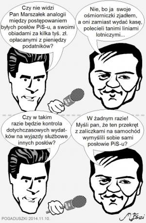 I zapewne na kontroli trzech nieszczęśników, których już ukarała rodzima partia, skończy się kontrola wyjazdów poselskich. Czy dlatego, że inni są kryształowo czyści? Ja raczej stawiałbym na to, że marszałek z PO będzie się bał, że taka kontrola z pewnością wykaże, że ci trzej posłowie sami nie wymyślili tego przekrętu, ale ściągnęli go od posłów partii rządzących. W końcu ściąga się od prymusa...