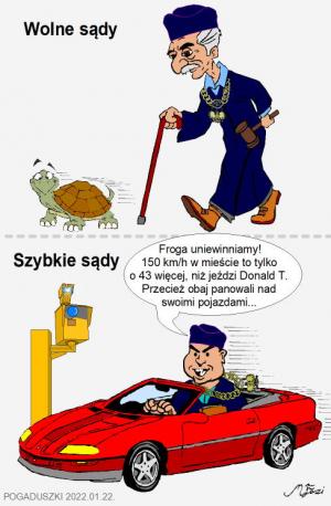 Czyżby sędzia sam miał szybki samochód i był sfrustrowany brakiem możliwości sprawdzenia pełnej mocy koni spod maski? I jakim resortowym dzieckiem jest Frog, skoro mógł liczyć na taką nadzwyczajną wyrozumiałość? Przecież to nie pierwszy przypadek, kiedy to kompletnie nieodpowiedzialny kierowca unika kary za lekceważenie przepisów drogowych, a nawet za spowodowanie wypadków ze skutkiem śmiertelnym. Od czasu do czasu również słyszymy o sędziach, którzy zostali złapani za kółkiem na podwójnym gazie. W końcu to ich również broni obecnie Komisja Europejska, domagając się zaprzestania działalności Izby Dyscyplinarnej, która ma usuwać z zawodu między innymi piratów drogowych w togach. Paradoksalnie jednym z nielicznych ukaranych ostatnio piratów drogowych okazał się Donald Tusk. Ale on przyjął mandat od policjantów, którzy przyłapali go na przekroczeniu dozwolonej prędkości o ponad 50 km/h. Musiał też oddać prawo jazdy na 3 miesiące. Ciekawe, czy gdyby odmówił przyjęcia mandatu i sprawa dotarła by do sądu, to nie trafiłby na podobnie wyrozumiałego sędziego, który uznałby, że skoro "panował nad swoim pojazdem", to kara się nie należy, ba, może nawet kazałby policjantom przeprosić prominentnego kierowcę i oddać mu prawo jazdy?