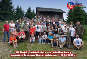 Ponad 200 osób uczestniczyło w dedykowanym pamięci porucznika Jerzego Kaszyńskiego II Rajdzie Gwiaździstym na Wielką Sowę, jaki przy pięknej słonecznej pogodzie odbył się 17 czerwca. Na najwyższy punkt Gór Sowich uczestnicy Rajdu wchodzili z czterech różnych punktów tych malowniczych gór, których pasmo leży w całości na terenie naszego kraju.