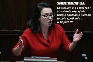 - Dlaczego pani udaje, że tego pytania nie słyszy? - zwrócił się w końcu Kaleta do Gasiuk-Pihowicz. Wreszcie, gdy prowadzący Andrzej Stankiewicz zapytał wprost, czy poseł PO „spotykała się ze Szmydtem w innych miejscach niż Sejm” – pompowana przez Tuska posłanka Gasiuk-Pihowicz przyznała: "Spotkałam się z nim raz i absolutnie więcej nie. Drugie spotkanie i trzecie to były spotkania w Sejmie" (sic!)