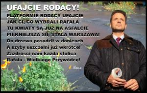 Miał być wielki show, miała być Ameryka a pozostał wielki wstyd i obciach „obrońców” demokracji, zachwyconych Rafauem, który nie potrafił przetłumaczyć wysłanego mu zaproszenia. Gdyby Rafau miał choć trochę mądrości kamieniarza z Powązek - nie pozostał by Warszawie ze swoim angielskim jak ten głupi [….]. Rafau pozostał by co najwyżej w gronie jeszcze głupszych od siebie głupków z Platformy Obywatelskiej, którym się śnią sny o potędze…