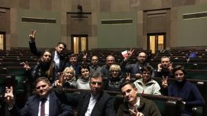 Po prawie miesiącu od zablokowania polskiego Sejmu przez grupkę posłów opozycyjnych – żarty już się skończyły! Już nie będzie – a przynajmniej nie powinno być zgody na dalszą okupację Sejmu przez terrorystów! W sprawę blokady Sejmu powinien wejść Prokurator – sporządzić akty oskarżenia z art.128 kodeksu karnego, zaś rolą Sądu pozostanie przykładne ukaranie terrorystów. Bo choć Platforma Obywatelska i Nowoczesna pl na trwałe zapiszą się w historii Polski, jako pierwsze w świecie partie, którym udało się zablokować na miesiąc Parlament – to nie jest to jeszcze powód do tego, by terroryści mogli za swój haniebny czyn pozostać bezkarni.