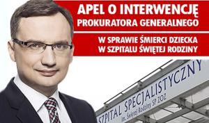 „Szanowny Panie Prokuratorze, zwracam się do Pana z apelem o objęcie bezpośrednim nadzorem postępowania, które prowadzone jest w sprawie śmierci dziecka narodzonego w wyniku nieudanego zabiegu aborcji, co miało miejsce w nocy z 6 na 7 marca 2016 r. w Szpitalu Świętej Rodziny w Warszawie” – czytamy w apelu, który można podpisać korzystając ze strony protestuj.pl.