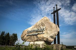 Ogromy głaz na tym zdjęciu niżej mówi nam, że do Pola Grunwaldzkiej Bitwy jest 12 kilometrów.