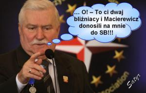 L. Wałęsa ugrzązł w żenującej megalomanii, pod którą fermentowały kompleksy prostaka, nagle wyniesionego na salony. Mówił: „To ja obaliłem komunizm” i tym podobne dyrdymały. Jakże to żałosne! Podobno był inwigilowany przez SB, szykanowany za aktywność w Związku „S” w 1980 roku. Bardzo więc zastanawiał fakt popierania przez niego dalszego utajniania akt UB i SB.