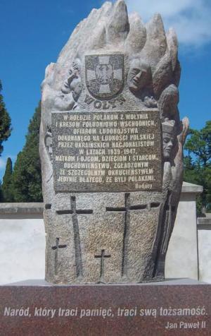 Na Wołyniu i Kresach w niezwykle krwawym, okrutnym ludobójstwie zamęczono setki tysięcy niewinnych ludzi, przeważnie kobiet i dzieci i w większości wiernych Kościoła katolickiego. Owi Męczennicy Wołynia i Kresów gineli najczęściej z ostatnimi okrzykami z serca i na ustach: „Jezus Maryja”, „O Jezu, Jezu”, „Matko Boska”, „Chryste” itp, itd. Do dziś wielu z Nich leży w dołach, ciemnych jamach i pod krzakami, pod progami swoich chat, całymi rodzinami, koloniami, wioskami, dokładnie tak jak ich podli, demoniczni oprawcy z OUN-UPA nieludzko zakopali. Dlatego Kresowianie stawiają właśnie, choćby te pomniki w polskich miastach i wsiach, ku Ich żywej pamięci i o modlitwę za Ich nieśmiertelne dusze. W tym samym czasie na Ukrainie, jak szeroka i długa, oprawcom z piekła rodem stawia się pomniki i na te pomniki z błogosławieństwem Cerkwi grecko-katolickiej sadystów obrzydłych się wynosi! I tak oto właśnie na naszych oczach, na oczach papieża Franciszka, biskupów Polski, Ukrainy i Europy rodzi się na nowo piekło zbudowane na zbrodni i potwornym, piekielnym kłamstwie! Nadto jeszcze dziś okazuje się, że już w wolnej ojczyźnie i po 75 latach od ludobójstwa, Pasterze Kościoła katolickiego w Lublinie nie znajdują czasu, by przybyć i pomodlić razem z Kresowianami, poświęcić Pomnik wzniesiony Ofiarom Wołynia i Kresów.