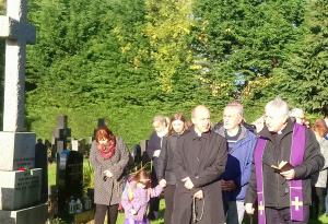 I wielu wielu innych! W trakcie nabożeństwa zrobiliśmy kilka fotek dla żywej pamięci i z myślą o tych ltórzy przyjdą pomodlić się tu w następnych latach. Na modlitwie towarzyszyła nam Gita Zelmene, Łotyszka z Rygi, która przyjechała aż z Blantyre. Chwilę rozmawialiśmy także z panem Alferem, od lat b. aktywnie uczestniczącym w życiu miejscowej Polonii, była tam nasza dobra znajoma Izabela Czekaj i wielu innych. Nasze zgromadzenie topniało i my też wyruszyliśmy w drogę powrotną. Piękny, słoneczny, jesienny dzień podarował nam jeszcze na koniec przecudną tęczę, która jednym ramieniem wznosiła się gdzieś za Springburnem, a drugim daleko za Rutherglenem. Patrzyliśmy i mimo woli myśleliśmy: „Jak owy biblijny znak przymierza.”. Radość była w naszych sercach.