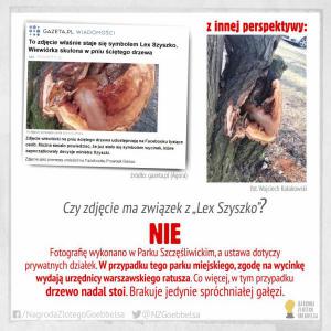Ustawa o wycince drzew okazałą się pewnym sukcesem. Mnóstwo ludzi wycięło niebezpieczne czy przeszkadzające drzewa. Niestety Kaczor palnął że to cofnie i wpadli w pewną panikę. Co zrobili natomiast tamci? Wyciągnęli jakąś wiewiórkę, okazało się, że jej drzewo nie zostało wycięte, tylko odcięli gałąź spróchniałą i to na jesieni. I na terenie miejskim, czyli nie mającym związku z ową ustawą ministra Szyszki. Wyborcza nadała tutaj ton fejkom. Żeby zamknąć temat: ustawa ta byłą przegłosowana w trakcie owego Ciamajdanu w Sali Kolumnowej i jak to kwiliło z tego powodu. Ale kogo społęczeństwo obarczy wina za owe głosowania? Przecież nie pisiorów, tylko tamtych. To Platforma z Nowoczesną wyły i okupowały mównicę, więc do kogo mogą mieć pretensje? No do siebie. Tak by mogli złożyć poprawkę i by nie było problemów. Np. liczbę drzew wycinanych ograniczyć do 5 czy 10 rocznie. Ale z drugiej strony nie można blokować ludziom gruntu ze względu na drzewa: podatek płacić muszą a bloku nie postawią. Albo biurowca. Ekooszołomy: albo od nich wykupcie grunt albo płaćcie odszkodowanie i już.