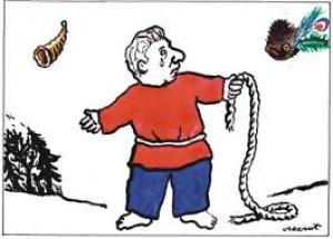 Cham mając w ręku mandat wyborczy schylił się po 100 obietnic i zapewne już zrozumiał, że utracił jedno i drugie. Ostał mu się tylko sznur, który symbolizuje sowiecki postronek i niemiecki knut.