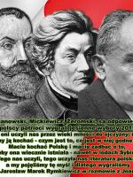 To oni, Żeromski, Mickiewicz, Kochanowski, są odpowiedzialni za to, że polscy patrioci wygrali jesienne wybory 2015 r. To oni są odpowiedzialni, ponieważ to oni uczyli nas przez wieki miłości do ojczyzny; i mówili nam, za co mamy ją kochać - czym jest to, co jest w niej godne kochania. To myśl najważniejsza „Popiołów”, „Pana Tadeusza”, „Anhellego” i „Wesela” - macie kochać Polskę i macie zadbać o...