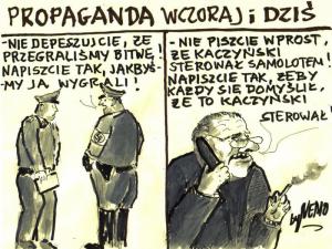Niestety - zamiar reżimowej telewizji kompletnie spalił na panewce, gdyż zamiast kolejnego oskarżenia Kaczyńskiego - tym razem ze strony osoby niezaangażowanej w piekło III RP - czyli byłego doradcy Putina - usłyszeliśmy krzyk przeciwko naszej władzy ludowej oraz przeciwko władzy Putina, które ramie w ramię ukrywają prawdę o Smoleńsku. Wciskając przy tym społeczeństwu nachalny kit przez zatrudnionych agitatorów oraz lizusów władzy. Ot, choćby takich jak Dominika Wielowiejska z GW czy MO z TVN.