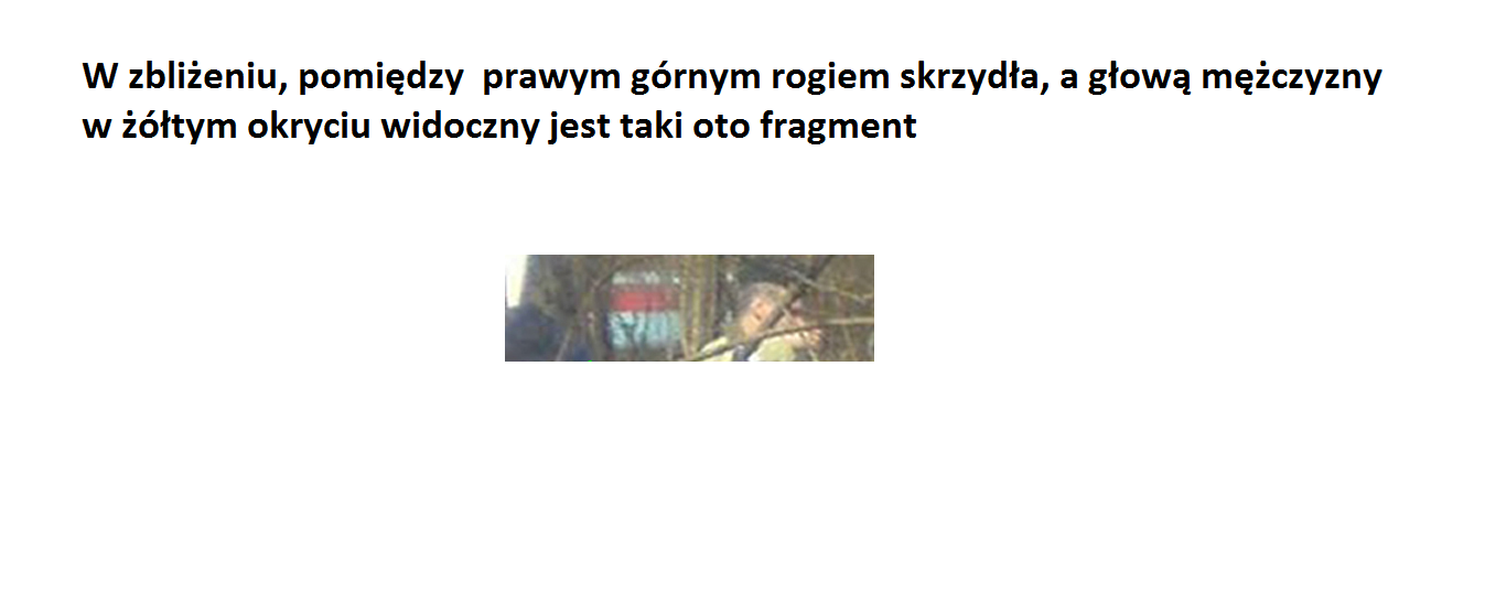** Świadek opowiada tak, jak gdyby kadłub samolotu znajdować się miał gdzieś w okolicy skrzydła. Czyżby gdzieś w pobliżu autokomisu i ulicy Gubienko?
