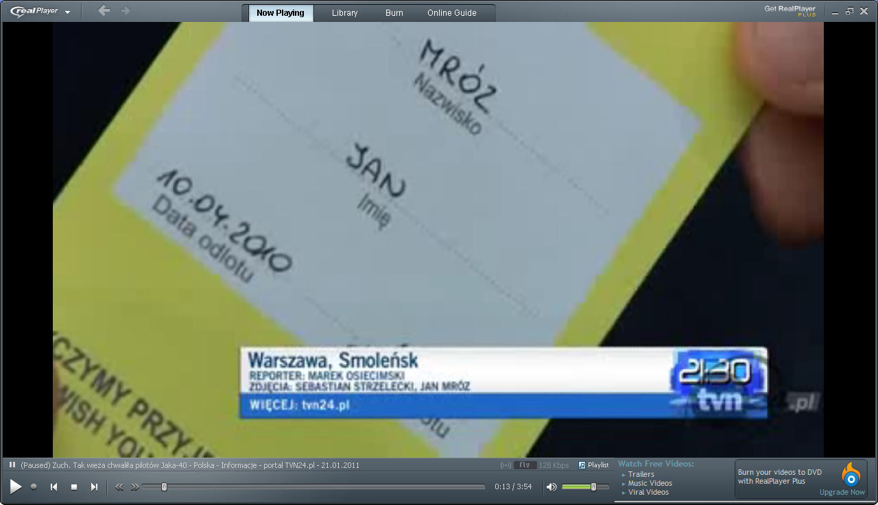 I teraz ciekawostka: przez wiele miesiecy wyznawcy teorii dwoch miejsc dowodzili manipulacji z czasem w dniu 10 kwietnia, dzieki czemu zamachowcy byliby w stanie przygotowac maskirowke. Ostatnie wypowiedzi ekspertow pokazaly, ze nie da sie sensownie odpowiedziec na pytanie, ktore postawilem powyzej (bo nie da sie fizycznie dokonac "zrzutu" wraku samolotu, ktory wazy kilkadziesiat ton, w przeciagu kilku, kilkunastu minut badz nawet kilku godzin, wiec zaczeto teraz "udowadniac", ze wrak zostal podrzucony przed 10 kwietnia (vide FYM-owe "porownania" zdjec). Oczywiscie to sa "dowody", a nie dowody...