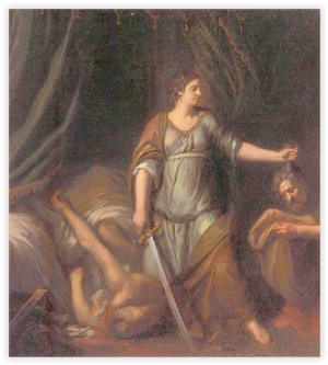 Judyta w walce o potęgę Żydów z uciętą głową Holofernesa, obok leży ludzki kadłub. Pozostaje tylko życzyć naszym posłom wesołego świętowania w tej atmosferze państwa ISIS... Oczywiście, ironizuję, bo mam nadzieję, że w ferie wielkanocne i wakacje posłowie PIS dokształcą się i poniechają w roku 100-lecia odzyskania niepodległości tego magicznego procederu spod ciemnej gwiazdy, odprawiania i upamiętniania jakichś pogańskich, krwawych, maksymalnie antychrześcijańskich zabobonów w budynku polskiego Sejmu...