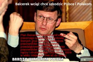 Nie będę nazywał go profesorem, bo na ten tytuł nie zasługuje. Mogę tylko powiedzieć, że wielu Polaków to idioci, bo tylko tacy głosują na Jerzego Buzka, najgorszego premiera w historii III RP. To w wyniku rządów Balcerka, jako ministra finansów (podczas premierowania marionetki TW „Karola”, czyli Jerzego B.), gdy tenże Balcerek zaczął schładzać gospodarkę, zaowocowało to tragedię milionów Polaków. Bezrobocie wzrosło wówczas z de facto 10,3 do 20 %. Nieoficjalne było o wiele wyższe.