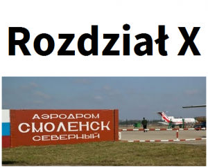 - Odleciał - odpowiada krótko mężczyzna, nie zatrzymując się ani na ułamek sekundy(10). Gdy oddala się w kierunku oczekujących na Delegację osób zebranych przy bramie wjazdowej na lotnisko - dla stewardessy wszystko staje się nagle oczywiste. Krzyczy w kierunku osób oczekujących na przylot Tupolewa - Rosjan i Polaków znajdujących się przy rampie - aby biegli z pomocą, pomagali w ewakuacji, ratowali(11). Nie wiadomo, czy to podniesione przez nią larum, czy też słowa Rosjanina, który przeszedł obok i właśnie dotarł do oczekującej grupy - dosyć, że samochody stojące przy pasie lotniska nagle ruszają. Przejeżdżają szybko obok Jaka, kierując się w miejsce, z którego przed chwilą doszły do nich dźwięki wybuchów i jęk zamierającego silnika. W jadącej kawalkadzie jest karetka pogotowia, wóz straży pożarnej i kilka cywilnych samochodów na dyplomatycznych numerach(12). Wątpliwości Artura Wosztyla, co do tego co się mogło zdarzyć, w tym momencie zaczynają się rozwiewać(13). Chwyta komórkowy telefon, wciskając numer dowódcy jednostki.