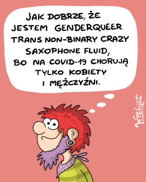 Mam stary rocznik Przewodnika Katolickiego z 1933 roku. Jest tam kawał rysunkowy (nie chce mi się szukać, żeby robić zdjęcie i wklejać, więc opiszę) na którym siedzi dwu gości i jeden ma w zębach palącą się fajkę, a drugi w ustach trzyma ustnik saksofonu, z którego tuby leci dym. I ten z fajką mówi: "Nie rób piekła kochany, do twojego saksofonu zmieści się więcej tytoniu, niż do mojej fajki". Może w 87 lat później ktoś chce wpychać do saksofonu jeszcze coś innego? Jak widać po ilości wymyślonych płci, fantazje LGBT.....itd nie mają granic. Może chcą tam wepchnąć jakieś dopalacze?