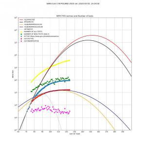 Wykres który zamieściłeś jest dosyć nieczytelny i mało zrozumiały. Nie wytłumaczyłeś oznaczeń na wykresie. Co to na przykład jest ALLINFECTED? Jeśli ALL to dlaczego ten wykres idzie w dół? Czyli nie jest to ALL a CURRENTLY infected czyli... ACTIVE? Przynajmniej ja bym go tak nazwał bo zdaje się nie wlicza zainfekowanych ale już wyleczonych. Chyba.