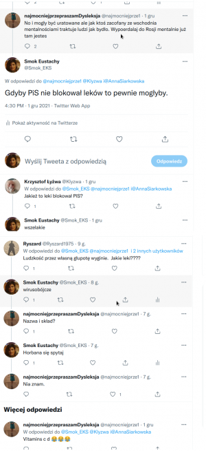 Jest coś dziwnego u szczepów że sama wzmianka o leku budzi furię i takie tam. Dlaczego? Nawet na wieść o Remdesivirze (czy czymś takim) się burzą? Przypominam, że wyraziłem pogląd iż Beata Szydło by się lepiej tu sprawdziła niż Mazowiecki. Kazała by im się wziąć do roboty i szukać leku. A zyski astrofajzerów byłyby dla niej kwestią drugorzędną.