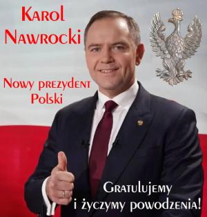 Karol Nawrocki zwyciężył w nierównej walce i zostaje naszym Prezydentem. Gratulujemy i życzymy powodzenia w pełnieniu tej jakże zaszczytnej, ale też trudnej i odpowiedzialnej funkcji.