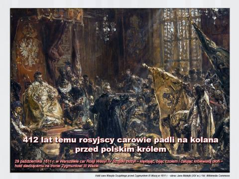 29 października 1611 r. w Warszawie car Rosji Wasyl IV Szujski złożył – klękając, bijąc czołem i całując królewską dłoń – hołd siedzącemu na tronie Zygmuntowi III Wazie.