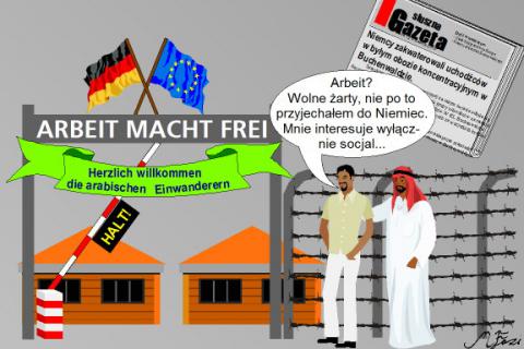 Ciekawe, jak imigranci nastawieni na niemiecki socjal przyjmują treść napisu "Arbait macht frei", który Niency obligatoryjnie umieszczali nad bramami wszystkich swoich obozów. Bo czy oni przybyli tam, żeby pracować?
