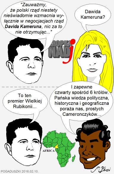Ryszard Petru w programie "Kropka nad i" skompromitował się (kolejny raz) jako polityk i człowiek kreujący się na lidera opozycji. Dwukrotnie nazwał premiera Dawida Camerona Dawidem Kamerunem. Tu nie ma czego komentować. Komorowski przy nim ze swoimi gafami to Mały Pikuś...