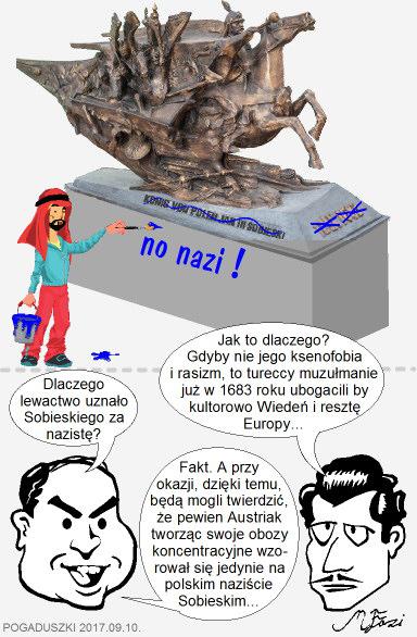 Jan III Sobieski wyraźnie komuś podpadł. W Wiedniu zniszczono cokół pod jego pomnik, przekreślając datę Victorii Wiedeńskiej, a w jej miejsce wpisując hasło "no nazi!". Ponoć wiedeńska Policja ma już sprawców. Dziwnym trafem, na razie nie wiadomo, kim są owi wrogowie nazistów z XVII wieku. Może to lewaccy naziści spod znaku Antify, może muzułmańscy "nachodźcy", a może jeszcze kto inny. Ale stawiam na którąś z tych pierwszych grup, bo skoro nie wiadomo, kim są sprawcy., to zapewne poprawność polityczna nakazuje ukrywać ich pochodzenie czy poglądy.
