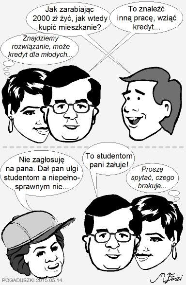 Komorowski wybrał się na spacerek. Rozmawiał z obywalelami. Ale, żeby nie strzelił "Bronka", chodziła za nim sympatyczna pani i podpowiadała, co ma mówić. Ale, widać prezydent powinien iść do laryngologa, bo mimo suflowania i tak mówił takie rzeczy, że jego sztab ponoć stowerdził: "no, to mamy przerypane"...