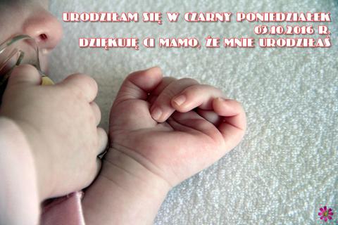 Urodziłam się w czarny poniedziałek 03.10.2016 roku. Za dar życia dziękuję Ci kochana Mamusiu.